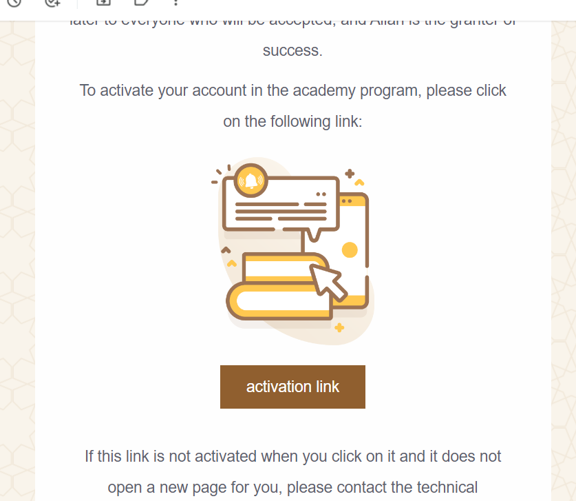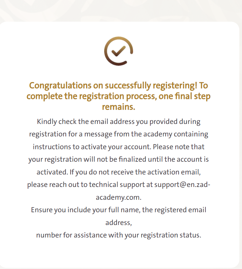 - If the registrant fills in their personal information and submits it but does not receive an email within two hours, this indicates an error in the email address provided during registration, and the registrant should contact the technical department of the Academy Program.