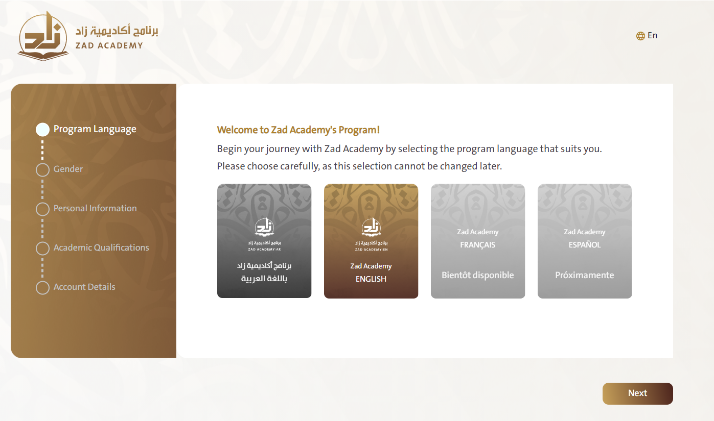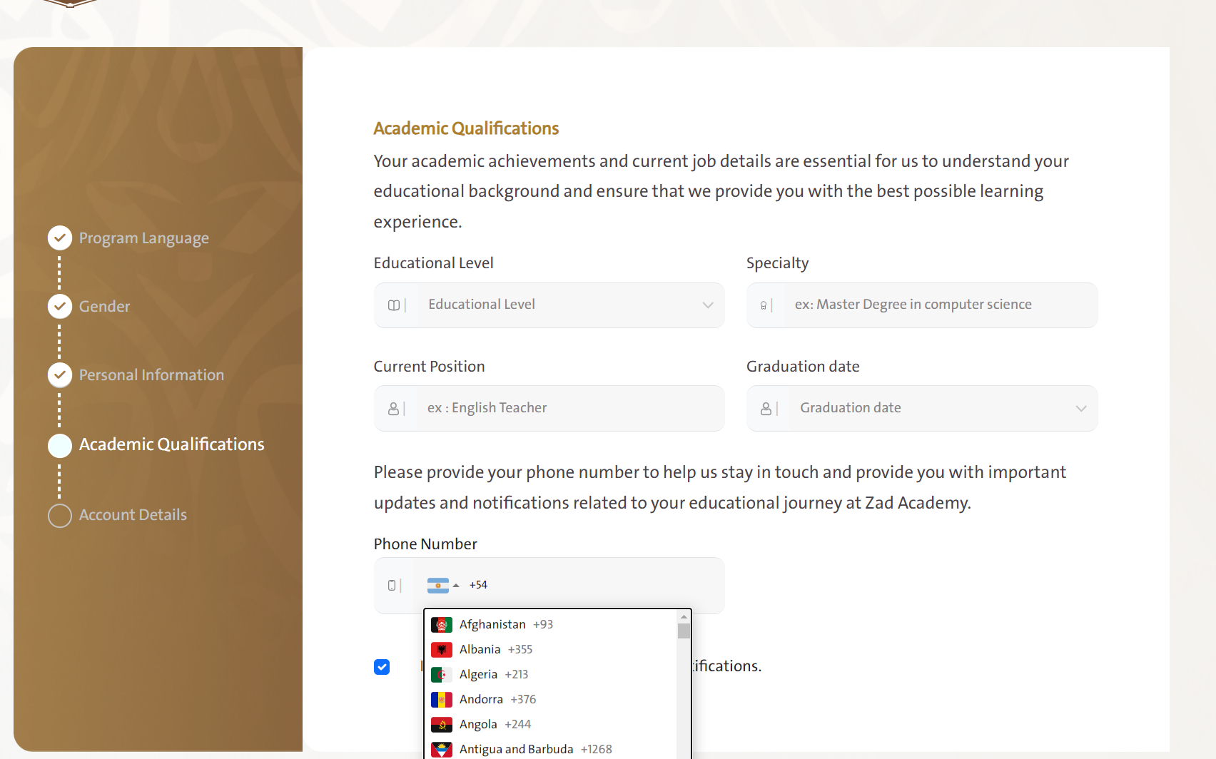 First, visit the registration page on the academy program website, then select the program's language and fill in the registration form with accurate personal information.