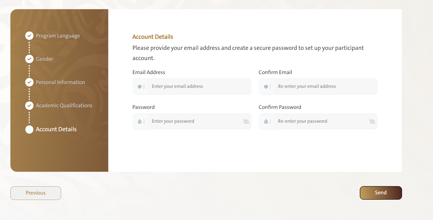 - It is very important to register all personal information correctly, as this information will be relied upon in the participant's personal profile and will be used in certificates and any documents issued to the program participant.
